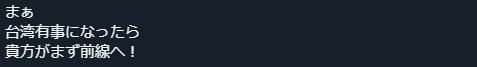 帖文年夜意:呵呵,若台湾有事,您先冲来前列!